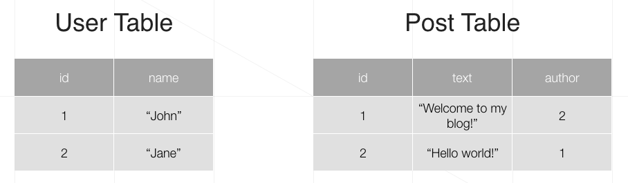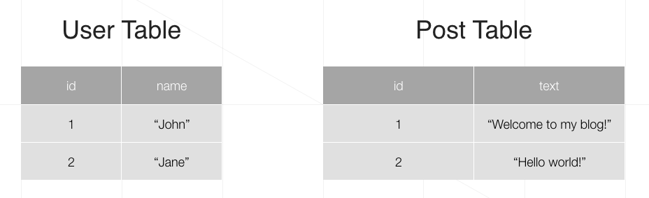 Suppose we have an application with users that can create posts. A database for this application may look like this: